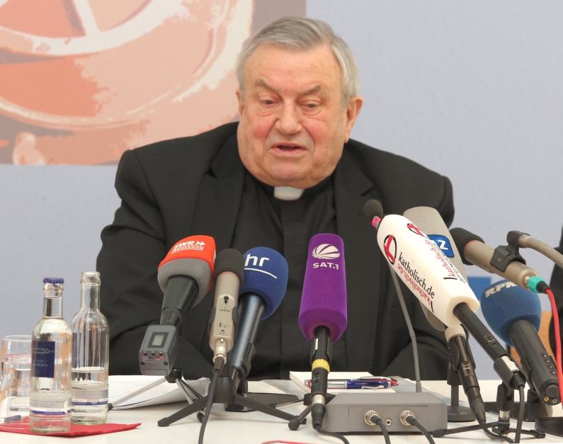 Lehmann als Einmischer, Mahner, Sprachrohr, hier bei seiner letzten Pressekonferenz als Bischof von Mainz im Frühjahr 2016. – Foto: Bistum Mainz