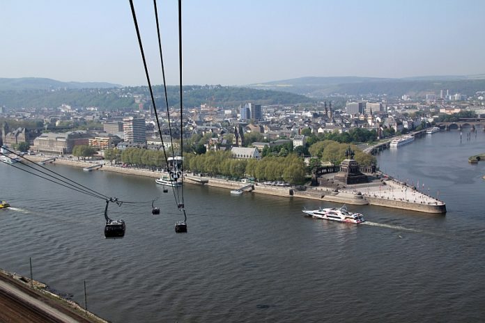 Spektakulärer Blick, unglaublich sanftes und ruhiges Fahrgefühl: Die Koblenzer Seilbahn. – Foto: Holger Weinandt via Wikipedia