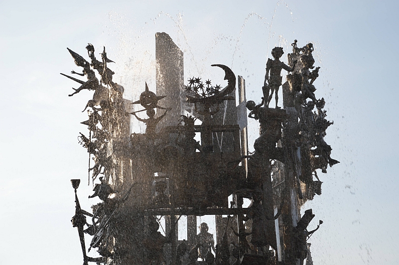 Brett vor dem Kopf und Ritt auf dem Einhorn – der obere Teil des Mainzer Fastnachtsbrunnens – Foto: gik