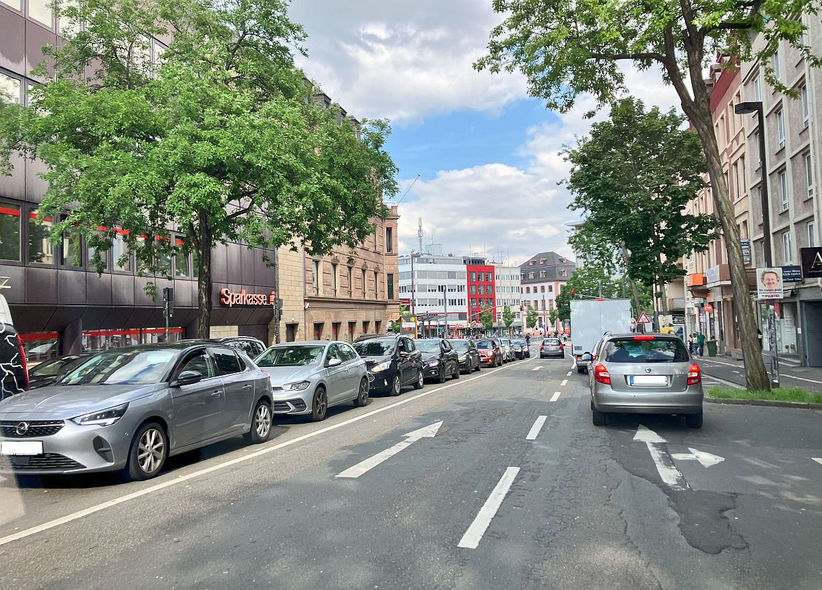 Für die Fahrt in Richtung Innenstadt gilt weiter die aktuelle Umleitung über die Gärtnergasse und die Umbach zur Großen Bleiche und weiter Richtung Große Langgasse. Stadtauswärts kann man genau so fahren, muss dann aber auf der Kaiserstraße entweder in Höhe Boppstraße oder später hinter der Christuskirche umdrehen. Eine Alternative bietet die Route Umbach – Kleine Langgasse – Schillerstraße und dann die Gaustraße hinauf in die Oberstadt. Dann landet man entweder geradeaus auf der Pariser Straße, oder muss über die Obere Zahlbacher Straße und das Römerlager in Richtung Saarstraße zurückkurven.