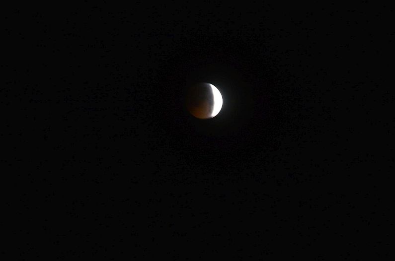 Tatsächlich schob sich der Mond, wie vorhergesagt, um 5.41 Uhr ganz in den Kernschatten der Erde und verdunkelte sich dann fast komplett. Wer nicht wusste, dass dort oben ein Mond stand, musste ihn ziemlich suchen – der Mond nahm eine tiefdunkelrote Farbe an und war kaum noch zu erkennen. Gut eine Stunde sollte die Phase der totalen Verfinsterung den Vorhersagen zufolge anhalten, der Mond dann langsam aus dem Erdschatten wieder austreten. Wir gestehen: Das haben wir dann doch nicht mehr abgewartet – und sind ins warme Bett gesunken. Die nächste in Deutschland sichtbare Mondfinsternis wird erst Silvester 2028 erwartet.