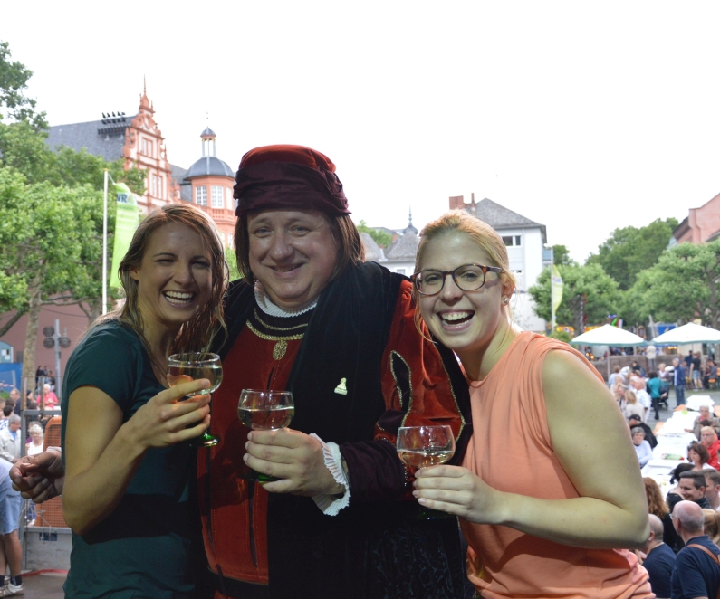 „Es war super-lustig, feucht-fröhlich und ein kleines bisschen kalt“, sagte Weinkönigin Sabrina hinterher, und Malenka fiel prompt ein, dass sie jetzt zum zweiten Mal Geschichte schrieben: Zum ersten Mal gibt es in Mainz eine Weinkönigin und gleichzeitig eine Weinprinzessin – und noch nie wurde eine Weinmajestät gegautscht. „Wahnsinn“, fand Malenka beeindruckt.