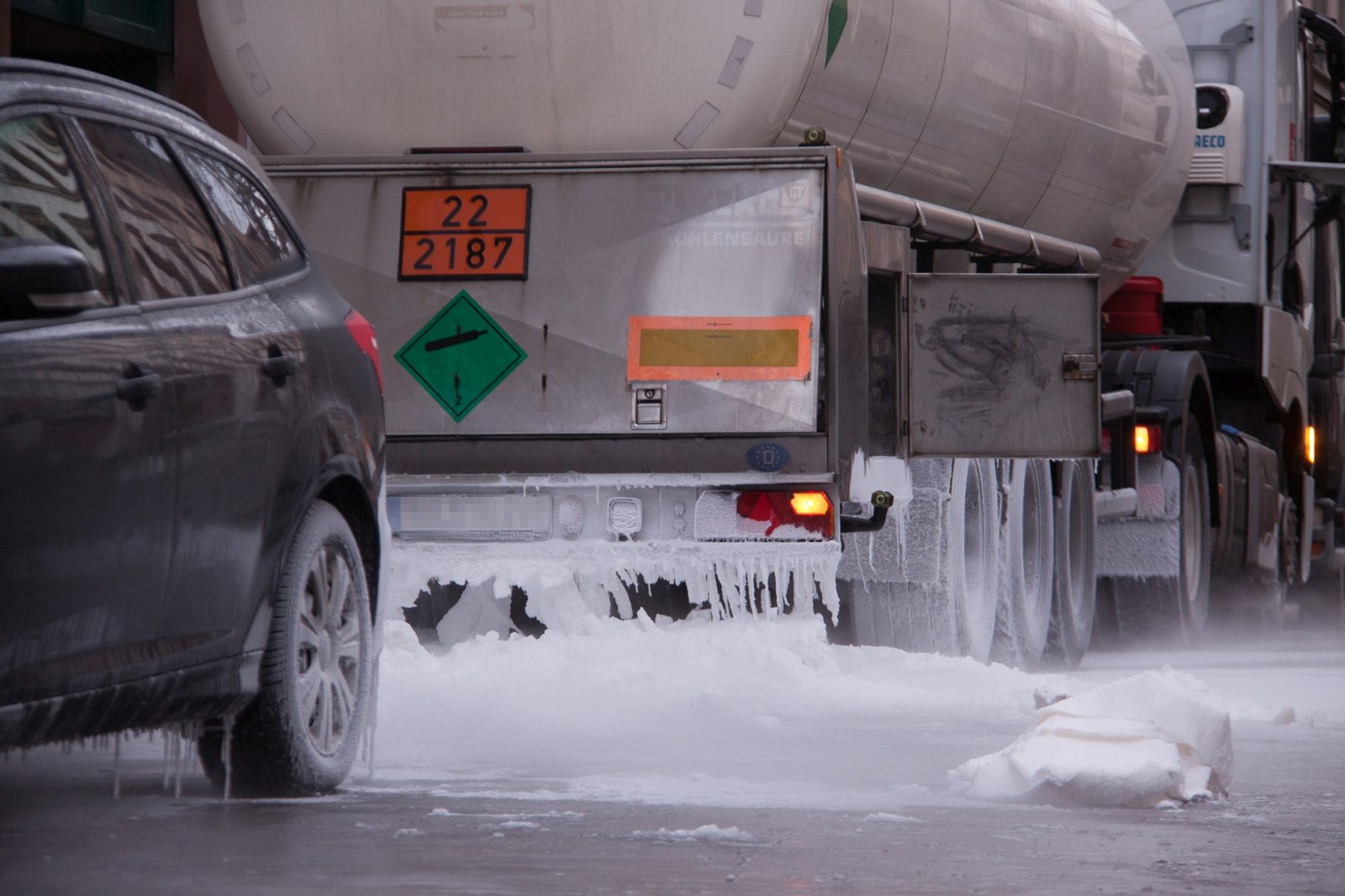 „Nachdem es zunächst vorübergehend gelungen war, den Stoffaustritt weitgehend zu stoppen, strömte kurz darauf schlagartig erneut CO2 aus“, schrieb die Feuerwehr am Abend in ihrem Bericht: „An der Austrittsstelle kam es zu Vereisungen der Armaturen und zu einer starken Sichtbehinderung durch den CO2-Nebel.“