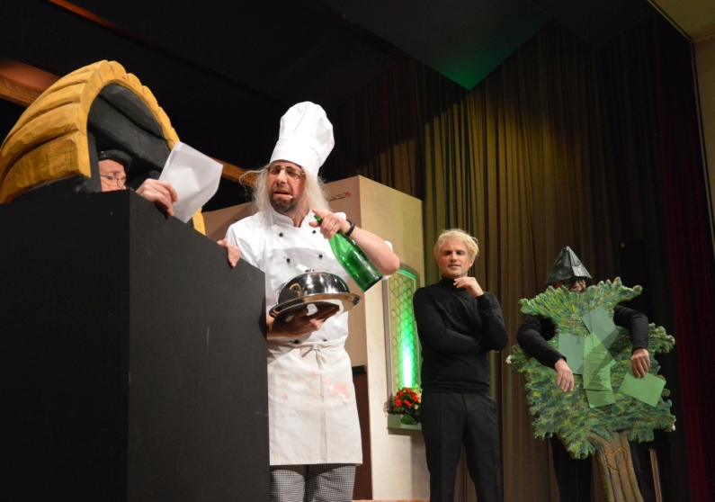 Kein Wunder, stehen da doch Michael Emrich, Benno Hellmold, Christian Schier und Martin Heininger gemeinsam auf der Bühne, und die vier Urfastnachter sind als Team eine wahre Fastnachts-Gewalt. Ganz nebenbei wird noch die halbe abendländische Theaterkultur durch den Kakao gezogen – ganz großes Kino. Noch zwei Mal kommen die vier am Abend wieder – aber dazu später mehr.