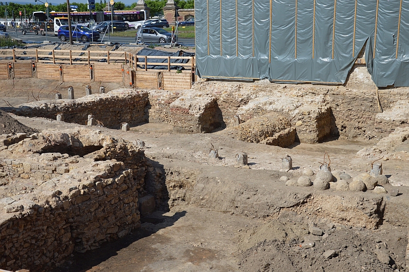 Doch des einen Leid ist bekanntlich des anderen Freud: Ein halbes Jahr dürfen die Archäologen den Untergrund vor und neben dem Landtag erkunden. Hier wurde etwa das alte Landtagsrestaurant abgerissen, dazu eine größere Baugrube rund um den neu entstehenden Anbau ausgehoben, die sich auch rund um die Frontfassade erstreckt. Und dabei machten die Archäologen reiche Funde: Vor dem alten Deutschhaus legten sie mittelalterliche Kelleranlagen frei, in denen sich die Lager für riesige Fässer fanden, die wohl mit Kalk gefüllt waren – wofür, ist noch unklar.