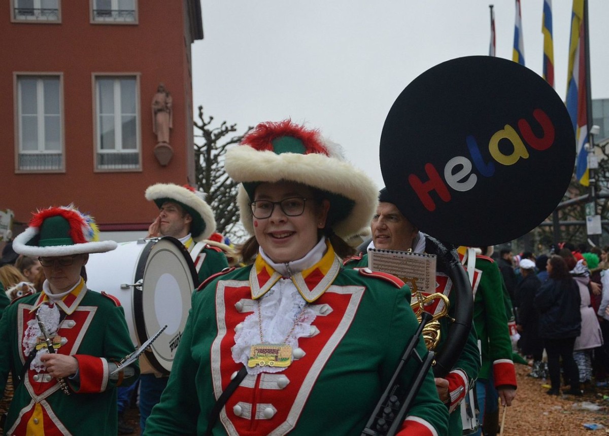 Von oben blieb der Tag ziemlich diffus, der Himmel hüllte sich hartnäckig in dunkles Grau. Auf den Straßen herrschte hingegen ein buntes Narrenmeer: Eine riesige Kostümvielfalt von Clowns, Piraten und Kuschelbären bevölkerten die Plätze und Gassen. Im Zug sorgten die vielen Garden, aber auch zahlreiche Guggemusiken für Farbe und Schwung, farbenfrohe Fußgruppen wie Erdbeeren, Tannenbaum-Narren und bunte Tanztruppen, auch zahlreiche Gäste aus nah und fern wurden gesichtet – darunter sogar Chinesen. Ein besonderer Hingucker: gleich mehrere Gruppen mit Kostümen venezianischer Machart.