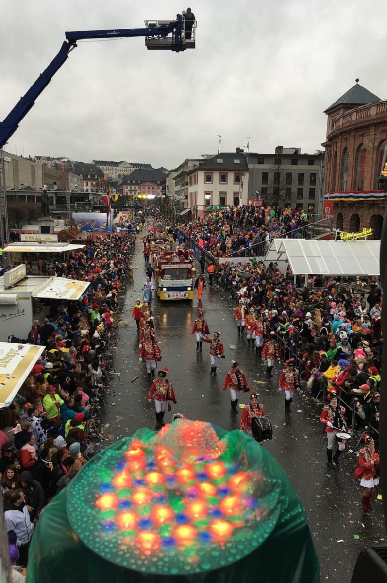 Es war einer der längsten Umzüge in der Geschichte von Mainz: Rund 9.500 Gardisten, Fußgruppen, Musiker, Aktive und Gäste machten sich ab 11.11 Uhr auf den Weg kreuz und quer durch die Straßen der Narrenhochburg. 7,2 Kilometer lang ist der Zugweg, die Zahl der Teilnehmer summierte sich indes auf gut neun Kilometer – und das zog sich. Vor allem hinter dem Dom, nach den Fernsehkameras auf der Ludwigsstraße, öffneten sich große Lücken im Zug, zeitweise waren die gar die Regel und nicht mehr die Ausnahme. „Was ist denn da los, wunderte sich eine Zuschauerin, „das killt echt die ganze Stimmung…“