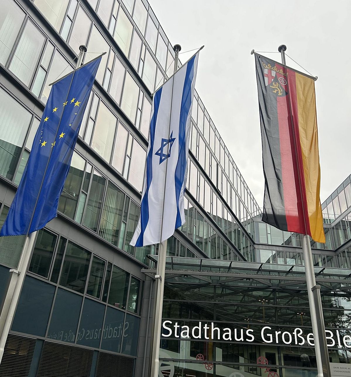 Am Mittwoch meldete nun der wieder genesene Oberbürgermeister Nino Haase (parteilos): „Am Stadthaus Große Bleiche wird ab heute, Mittwoch, den 25. Oktober, wieder die israelische Flagge als Zeichen der Solidarität gehisst.“ Die Beflaggung erfolge aktuell in Abstimmung mit der Jüdischen Kultusgemeinde Mainz-Rheinhessen und werde bis einschließlich 9. November 2023 andauern, dem Gedenktag der Pogromnacht, als Nationalsozialisten im Jahr 1933 republikweit Synagogen anzündeten, jüdische Geschäfte plünderten und zerstörten und auch jüdische Menschen ermordeten.