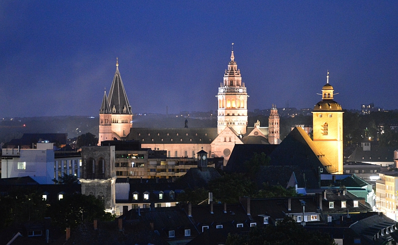Am Ende aber griffen die Feuerwerker noch einmal tief in die Raketenkiste und zauberten eine Fülle von Licht und Farbe in den Himmel – oooohhh!!! Ganz am Ende dann stiegen riesige goldene Rosetten und Goldregen in die Höhe, die Johannisnacht endete mit einer goldenen Nacht. Mainz& hat sich das Feuerwerk übrigens mal von einer ganz neuen Perspektive angesehen: Wir standen hoch auf einem Turm über den Dächern von Mainz. Ein dickes Dankeschön an die Astronomische Arbeitsgemeinschaft!