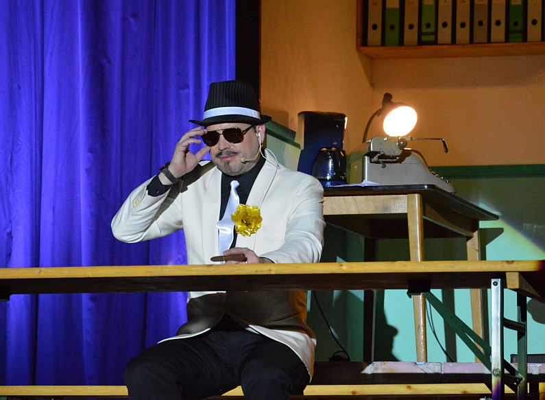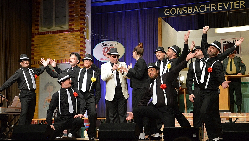 Seit einigen Jahren schon schafft es der GCV, aus den Kammerspielen echtes närrisches Theater zu machen. Wo andere Vereine zum 11.11. (durchaus auch gute) Fastnachtssitzungen auf die Bühne bringen, binden die Gonsenheimer ihre Aktiven in eine komplette Rahmenhandlung ein – mal Kreuzfahrt oder mal Vereinsjubiläum. Christian Schier und Thomas Becker komponieren inzwischen eine rasante Achterbahnfahrt in Sachen Narretei, in diesem Jahr höchst kriminalistisch. „Kriminalstunde am Gonsbach, dunkle Gestalten scheuen das Licht“, singt da der Eröffnungssänger, der fabelhafte Peter Beckhaus ganz in Kriminaltango-Manier: „Kriminalstunde überrascht dich im Schlummer/ hinter den Träumen lauert der Kummer, im Glauben, es wär alles Konfetti, Paletti/ grausam zerstört…“