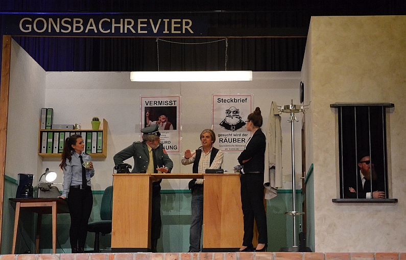 Es ist eine herrliche Polizeicrew, die da durch den Abend führt, großartig verstärkt durch Christina Grom als Melitta und geziert durch eine herrlich nervige Staatsanwältin Lea Heymann. Peter Büttner mimt den GCV-Hausmeister, und der hat Schreckliches zu vermelden: Die Komiteekapp‘ vom Sitzungspräsidenten ist weg, dazu Kostüme, eine Ehrennadel – vor allem der Wein und ein Kasten Bier.