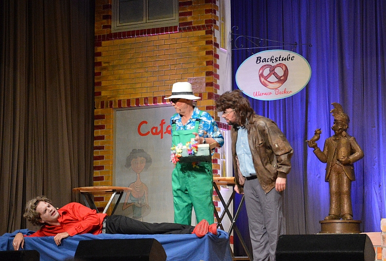 Thorsten Spengler und Torsten Schäfer geben mit großartiger Spielfreude und in Frauenkostümen die Damen von der Verkehrsüberwachung, blitzen auf den Feldern auch schnell die Gülle(n)-Bewegung und das Publikum wegen zu schnellen Hinsetzens – herrlich! Nebenher singen Wilma Petz und Evira Knoll auch noch, und schließlich gehen ihnen mit 111 kmh die Bockius Brüder in die Falle.