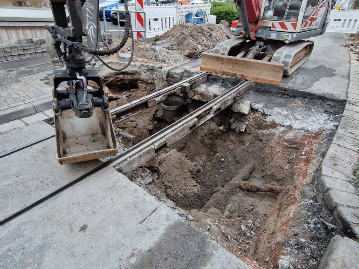 Am Montagmorgen hatte sich in der Mainzer Gaustraße in Höhe der Hausnummer 5 urplötzlich die Erde aufgetan: Zwischen Bordstein und Bahngleisen klaffte auf einmal ein tiefes Loch, die Gaustraße musste von jetzt auf gleich gesperrt werden – mit erheblichen Folgen für den Öffentlichen Nahverkehr: Die Straßenbahnstrecke zwischen Innenstadt und Oberstadt-Hechtsheim wurde unterbrochen, auch für den Autoverkehr geht auf der wichtigen Verbindung nichts mehr.