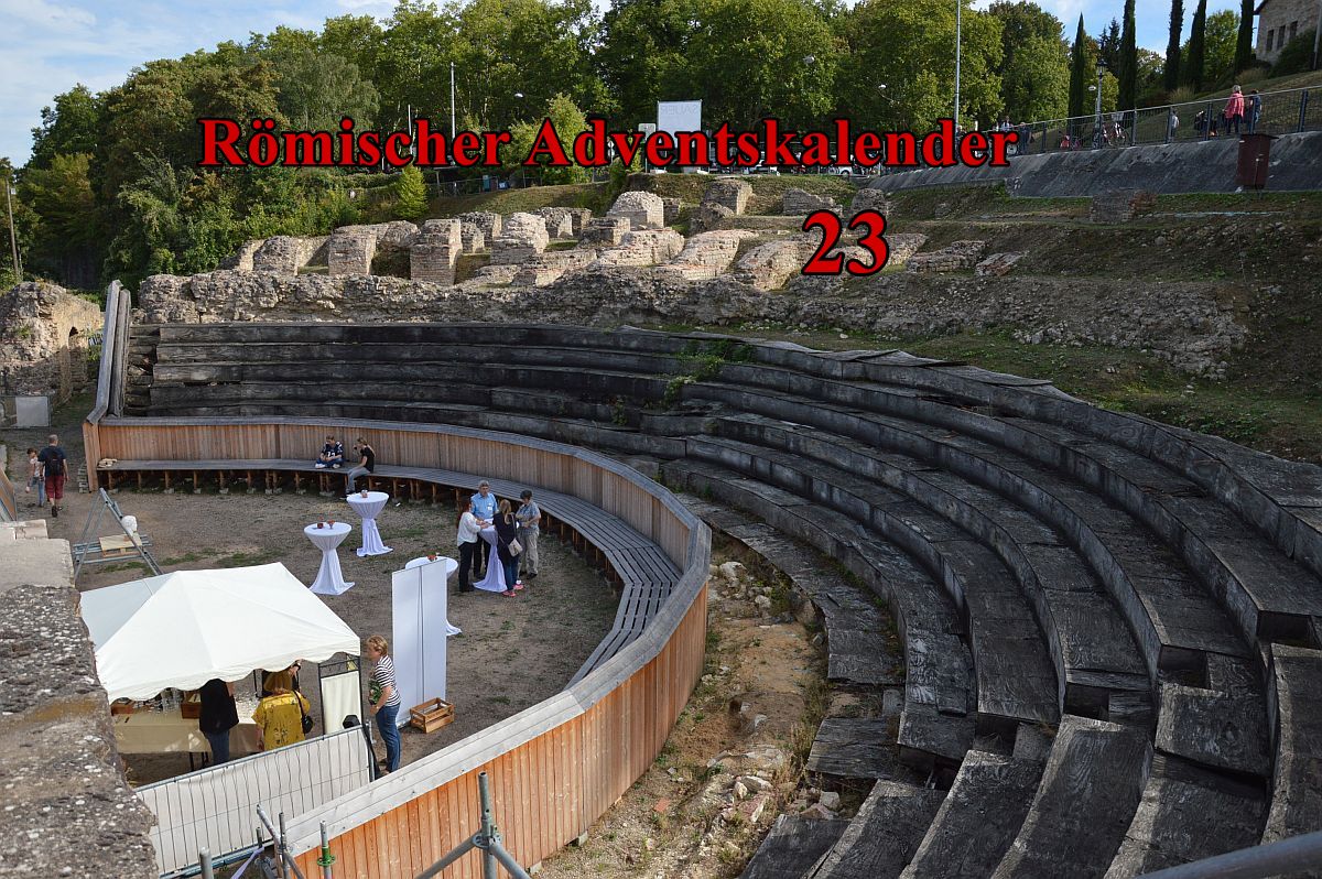Die Römer liebten Theateraufführungen: Ausdrucksstarke Pantomimen, klassische Tragödien, deftige Komödien, dazu Musik, Tanz und Masken – es waren große Spiele, zu denen die Menschen in Scharen kamen. Im antiken Mogontiacum stand ihnen dafür ein besonderer Ort zur Verfügung: das Bühnentheater am Südrand der Stadt. Klug in den Hang gebaut, fanden hier 10.000 Menschen Platz auf den hoch aufragenden Rängen – und doch verschwand das antike Prachtbauwerk für Jahrhunderte in der Vergessenheit. Eines der wichtigsten Denkmäler des römischen Mainz ist unser Mainz&-Adventskalender-Türchen Nummer 23.
