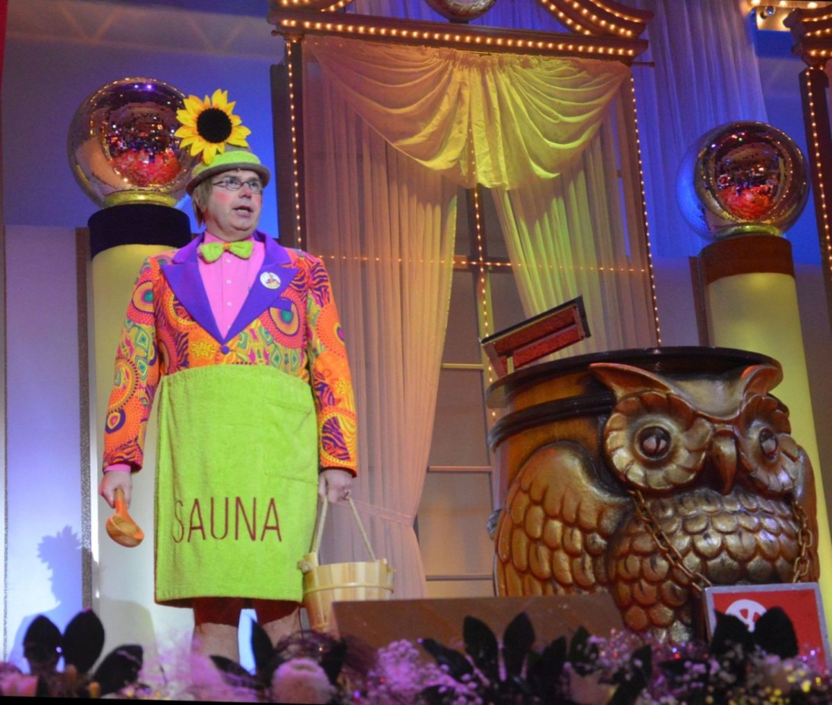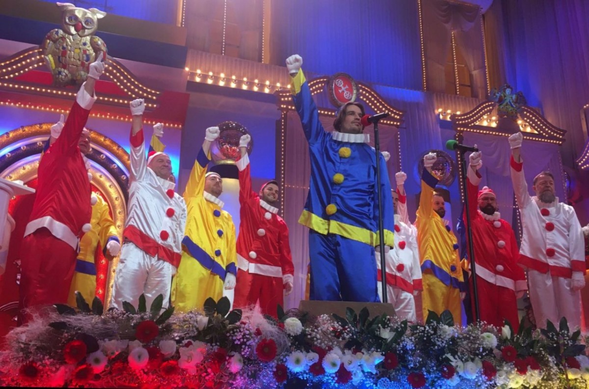 Unten auf der Bühne rollt direkt danach der „Nachtwächter“ seine Schriftrolle aus. Adi Guckelsberger telegene Figur braucht allerdings in diesem Jahr manches Mal recht lange, um auf den entscheidenden Reim zu kommen, das Publikum allerdings reimt gut gelaunt mit – in der Dynamik der Sitzung war das allerdings am Mittwoch eine Delle. Bleibt zu hoffen, dass dies kein Abschalt-Moment gerade bei jüngeren Zuschauern wird – danach kommt schließlich noch der Obermessdiener. Guckelsberger gehört zur Sparte Kokolores, die bedienen außerdem Jürgen Wiesmann mit seiner Fortsetzungs-Familien-Soap als „Ernst Lustig“, die so richtig erst versteht, wer die Auftritte der Vorjahre gesehen hat.