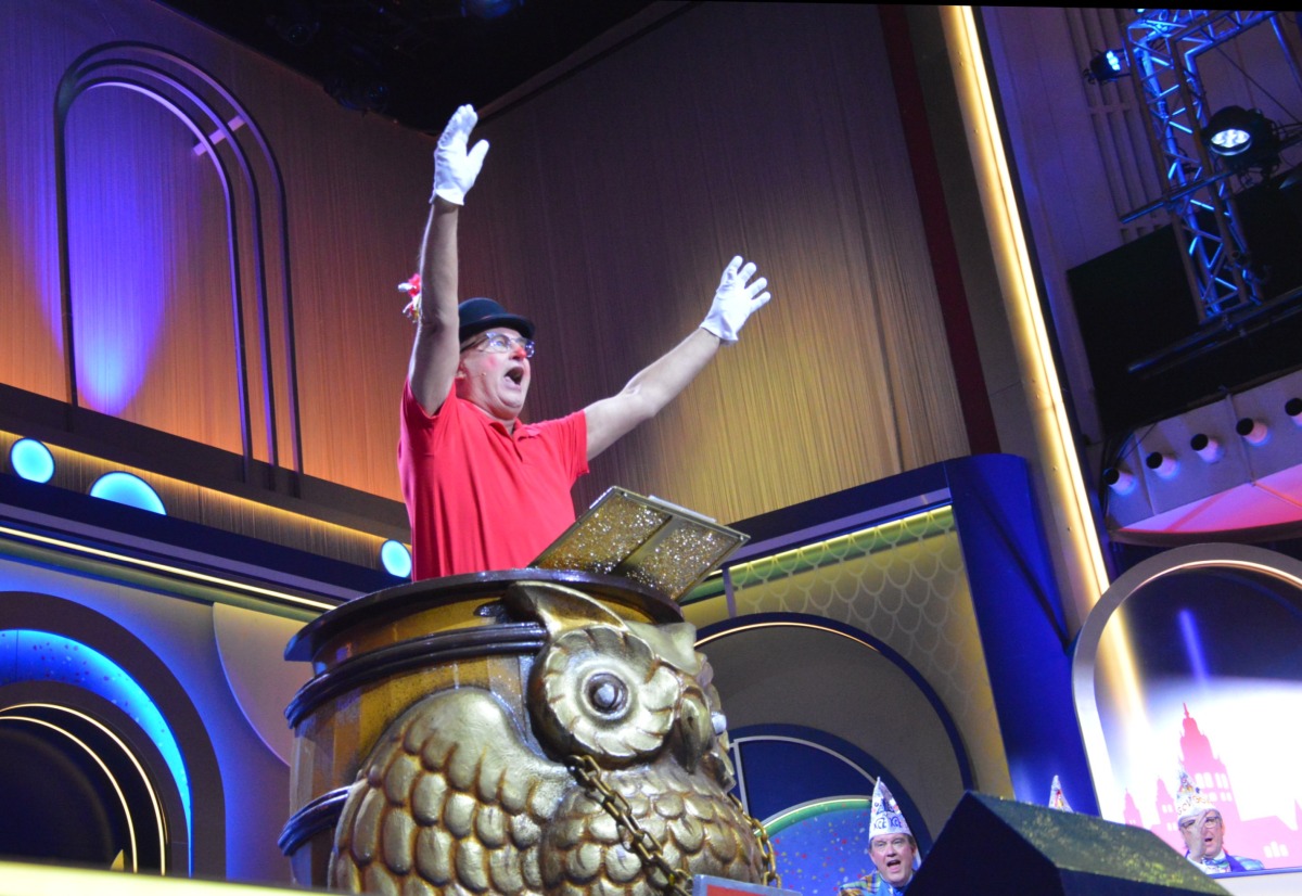 Die Fernsehsitzung ist derweil mitten im Schwung, und sie zeigt einfach keine Längen. Nach dem Museum verbreiten drei Topstars der Mainzer Fastnacht Schwung im Saal und auf der Bühne: Oli Mager und Dobbelbock mit ihren neuesten Hits, dazu Solo-Newcomer „Hollebutz“, der mit seiner „Helga“ einfach überall abräumt – die Überraschungsnummer der Mainzer Kampagne. Ein Abräumer ist indes in diesem Jahr auch Markus Schönberg: Sein „Ignaz“ irrt so herrlich närrisch über das zerstückelte Mainzer Marktfrühstück, dass sich der Saal kringelt und lauthals mitsingt: „Wann wird das Marktfrühstück wieder richtig?“ Die Antwort des „Ignaz“: „Das kann dauern…“ Oh je.