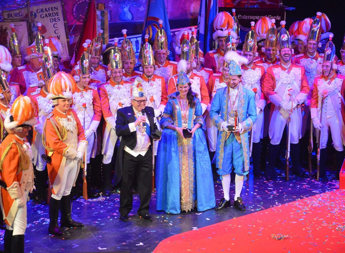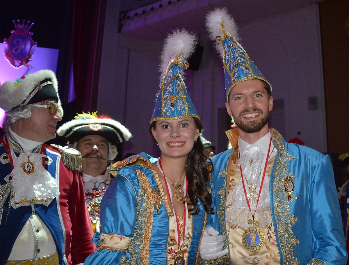 Nur gut sieben Wochen lang ist die Fastnachtskampagne 2020, auf das neue Prinzenpaar warten rund 100 Termine auf Empfängen, Sitzungen und Bällen. Am Samstag legten die Majestäten dann gleich schon mal einen eleganten Walzer aufs Parkett. Das Geschenk des Abends aber überbrachte OB Ebling: Eine gelbe Tröte als Symbol für „freie Fahrt auf allen Wegen“, versprach der OB – insbesondere über die ab Sonntag gesperrte Theodor-Heuss-Brücke.