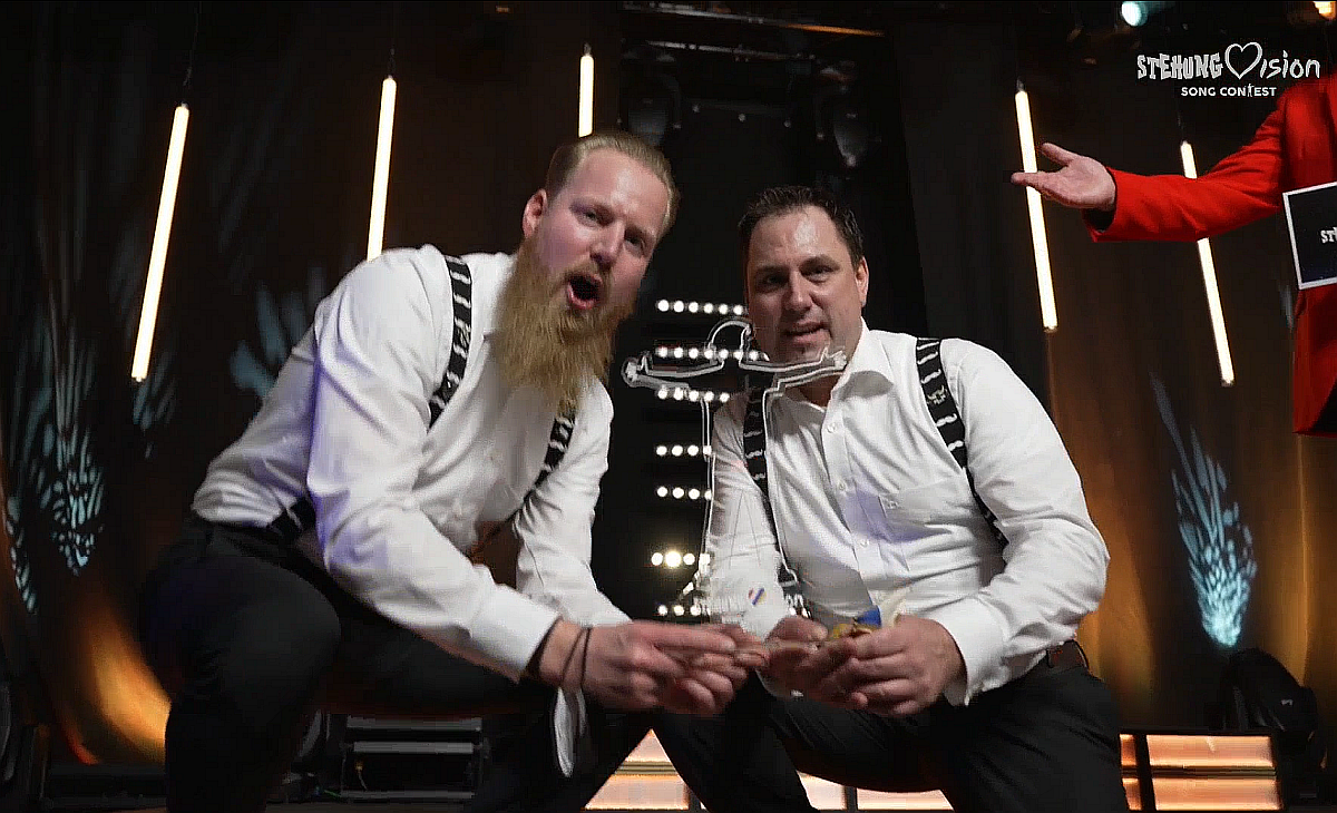 Während die Abstimmung läuft, haben die Gonsenheimer aber noch einen Knaller im Gepäck: Rudi Hube und Peter Büttner präsentieren eine geniale jazzig-bluesige Song-Version von „Wir Gunsenumer sind die scheenste Leit“, und wäre der Song Teil des Wettbewerbs gewesen, wer weiß, wie es dann ausgegangen wäre. So ist der klare Sieger des Abends am Ende eine Hymne, die in der Corona-Zeit geboren wurde, und den Nerv trifft wie kein zweiter Song des Abends: „Dann wird alles wieder gut“, singen die Brüder Andreas und Matthias Bockius alias „Dobbelbock“, und ihr Rock-Rap-Song bringt ihnen mit großem Abstand den Siegerpokal ein – den „gläsernen Steher“.