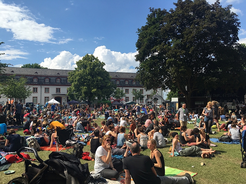 „Ich will hier nie wieder weg!“, rief Cynthia Nickschas von der großen Bühne des Open Ohr, und Erstaunen und Entzücken waren der Liedermacherin aus Bonn deutlich anzuhören. „Was für ein friedliches Festival“, staunte später auch Felix Schönfuss von „Adam Angst“, „wie geil ist das denn hier?“ Ja, es war die Musik, die beim Open Ohr 2017 mitriss – das Titelthema war es leider nicht. „Moderne Sklaverei“ lautete das diesjährige Diskussionsthema und obwohl hervorragende Referenten aufgeboten wurden, blieb das Thema irgendwie an der Oberfläche hängen. Dazu überfüllte Mülleimer, Zucker in Tütchen und Billigarmbänder für 5,- Euro – das Open Ohr 2017 schwächelte.