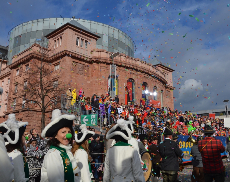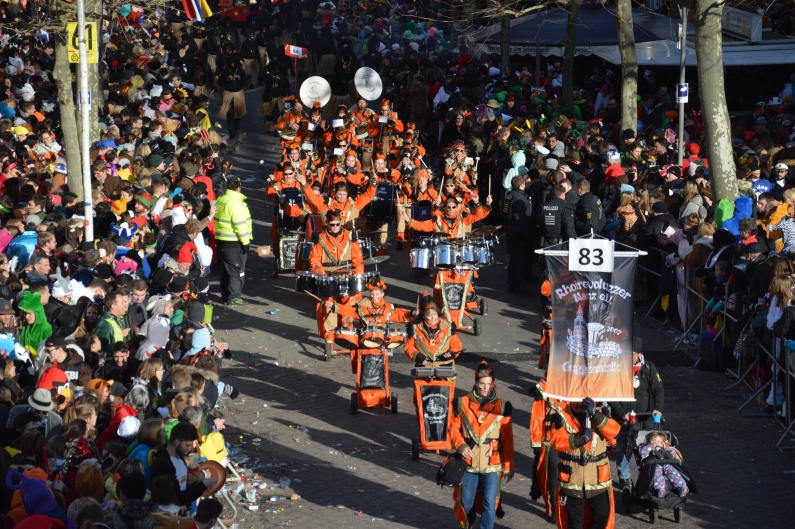 Pünktlich um 11.11 Uhr setzte sich am Morgen der 67. Mainzer Rosenmontagszug seit dem Zweiten Weltkrieg in Bewegung, 7,2 Kilometer lang zog der närrische Lindwurm kreuz und quer durch die Innenstadt. Die Sicherheitsvorkehrungen waren hoch, große Zugmaschinen blockierten Zufahrtsstraßen, es galt ein Lkw-Fahrverbot in der gesamten Innenstadt. Die Polizei zeigte mit zahlreichen Einsatztruppen Präsenz entlang des Zugweges, bis 17.00 Uhr wurden bereits mehr als 300 Personen kontrolliert, darunter 265 Kinder und Jugendliche.