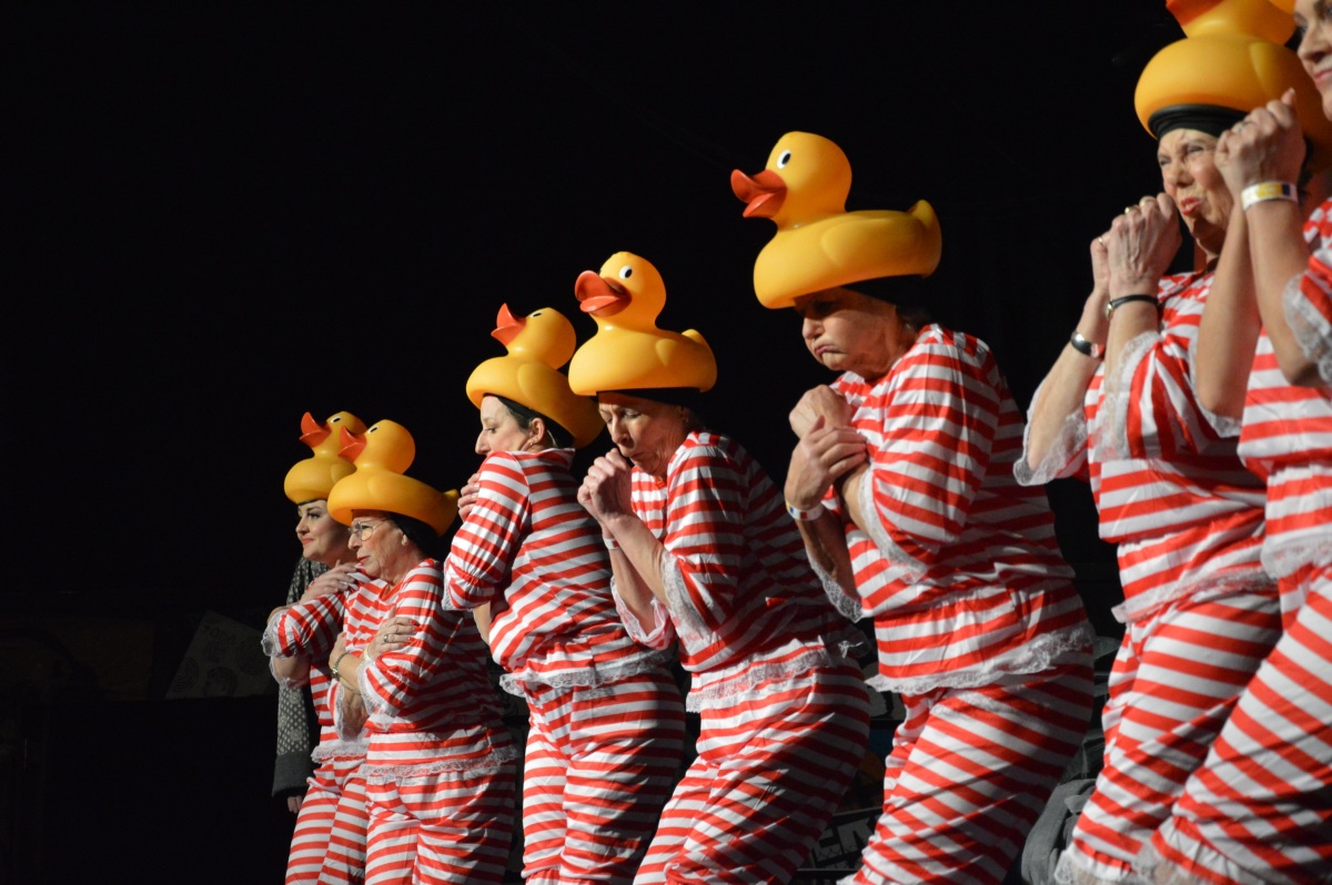 Ansonsten tauchen Männer nur als Running Gags auf, gespielt von Frauen natürlich – glossiert als Generation Z-Bubi oder Herbert, der Bauer auf der Suche nach einer Frau, die Gags allerdings sind manchmal ein bisschen „lost“. Das Gegenstück zum Kinderballett ist das eigene GCVrau Ballett, die gereiften Damen, die im vergangenen Jahr ein urkomisches Rollator-Ballett präsentierten, bezaubern in diesem Jahr mit einer unglaublichen Enten-Wellness-Nummer – wir sagen nur: „Die Ente bleibt im Wasser!!“