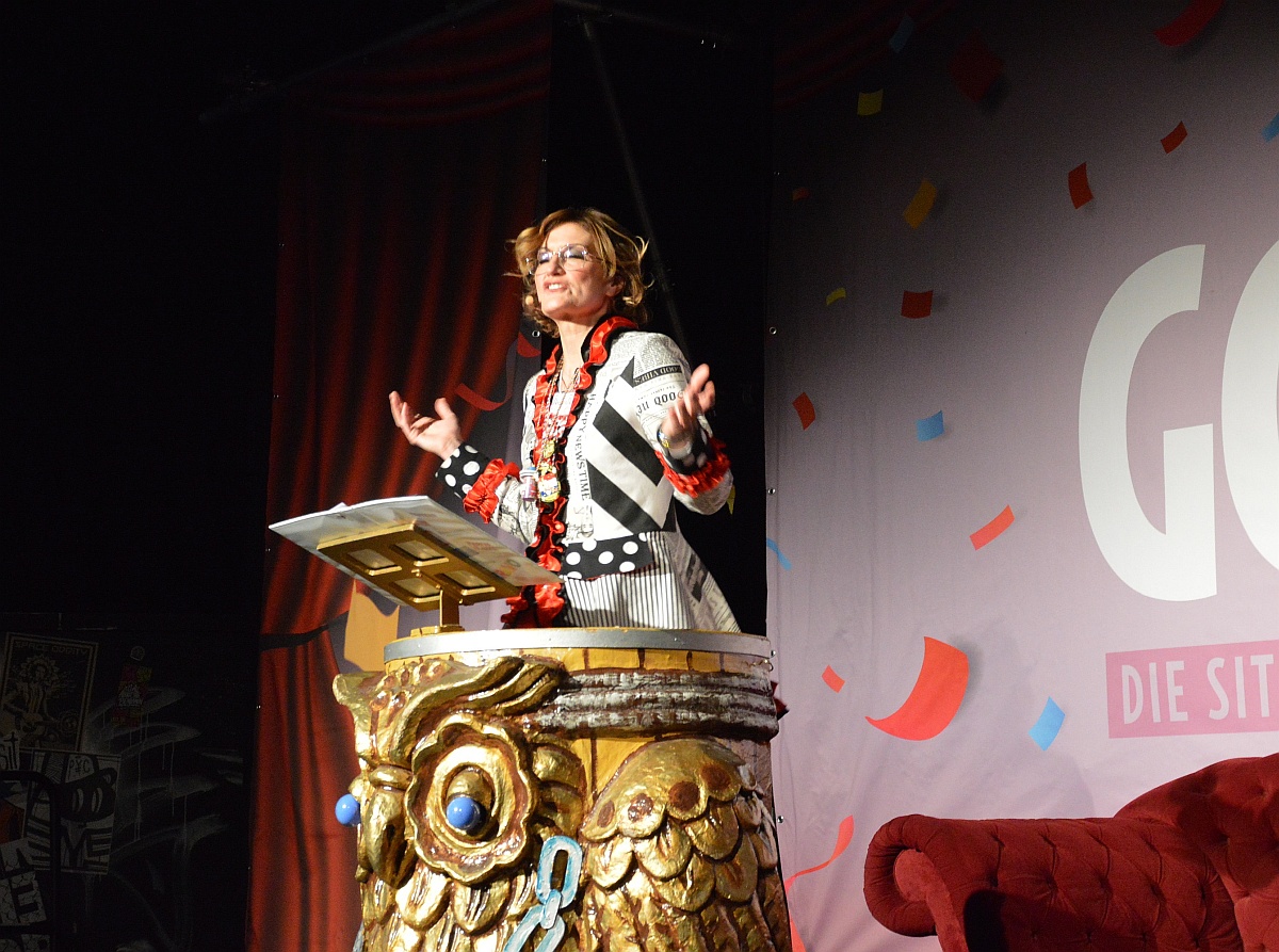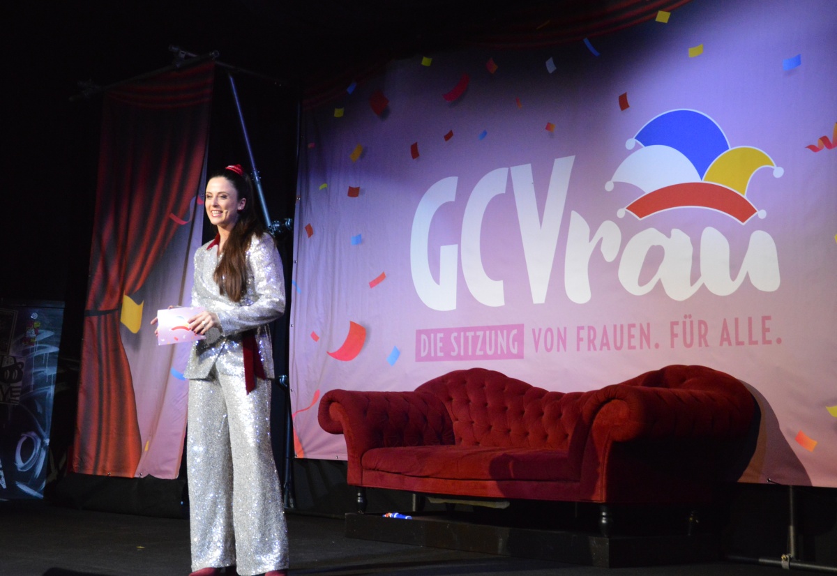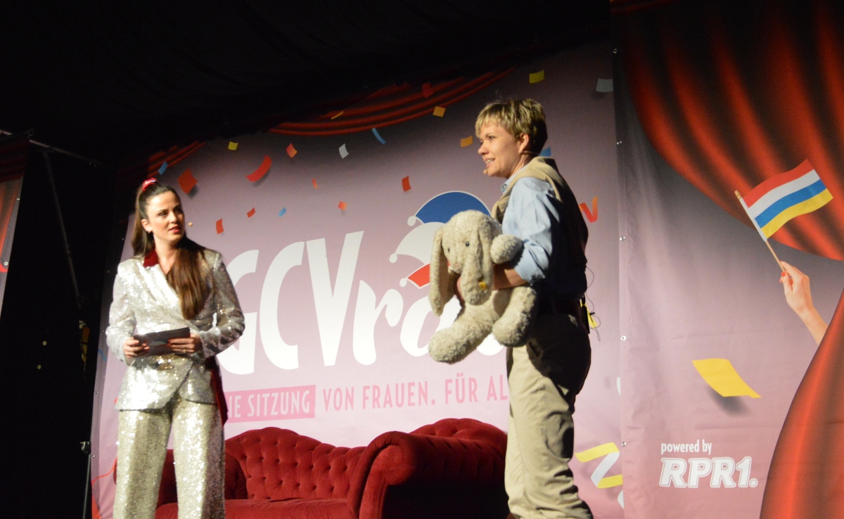 Der Abend beginnt mit einem Dankeschön: „Danke für Euch“, sagt Teresa Betz, „Danke, dass Ihr uns in wenigen Minuten ausverkauft ausverkauft habt!“ In der Tat: Vor einem Jahr hatte der Gonsenheimer Carneval Verein (GCV) ein Experiment gestartet: Eine Sitzung, gemacht ausschließlich von Frauen, und zwar hinter wie auf der Bühne, aber für ein gemischtes Publikum – das gab es in der Mainzer Fastnacht noch nie. Und siehe da: Wo jahrelang angeblich Frauenmangel bei den Aktiven herrschte – wie Männer gerne behaupteten – platzte die Bühne auf einmal vor talentierten Frauen-Narren.