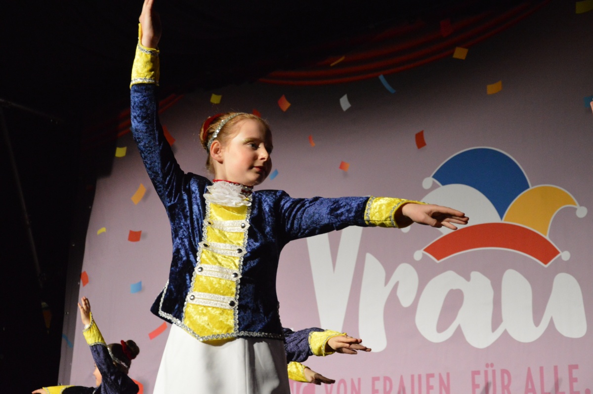 „Auf alle Frauen im Universum!“ stößt auch das Gardeballett der Füsiliergarde an, die „Wirbelschnorries“ zeigen, dass auch Garde Frauensache ist. Apropos Ballett: Das Kinderballett der Füsiliergarde wird gleich zu Beginn der GCVrau mit einem verliebten „awww“ begrüßt, und mitten zwischen den süßen Mädels tanzt tatsächlich auch ein kleiner Bub – er ist wirklich der einzige Mann, der an diesem Abend auf die Bühne darf. „Die anderen Jungs trauen sich das einfach nicht“, sagt der achselzuckend.