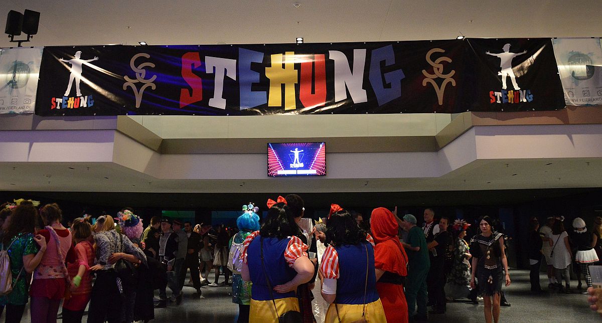 Den Zuschauern war das ganz offensichtlich egal: Gleich zu Beginn des Stehung um 19.33 Uhr drängte sich die Menge im Saal, die Besucher wollten vor allem eins: Party. Und die Stehung lieferte: Praktisch vom ersten Ton an herrschte eine gigantische Stimmung im Saal, und spätestens bei der Spaßmacher Company bebte die Rheingoldhalle in ihren Fundamenten.