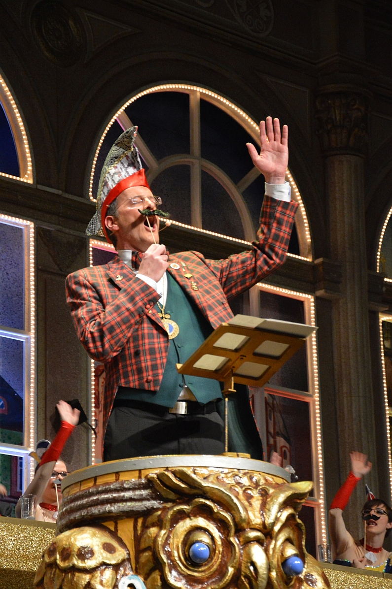 Noch ein anderer Bohnebeitel war zum Gratulieren gekommen: Oberbürgermeister Michael Ebling (SPD) begab sich höchstpersönlich in die Bütt auf der GCV-Bühne, um gemeinsam mit Kabarettist Lars Reichow ein närrisches Protokoll der Mainzer Ereignisse zu liefern. „Ans Rathaus kann ich mich nicht gewöhne“, reimte Reichow da, das sei doch nur „ein riesiger Haufen Schrott“, drum solle der OB mal ehrlich sagen: „Wann sprengen wir’s denn endlich fott?“ Nun ja, meinte der OB, „da wackelt die Wand, da bröckelt der Putz“, doch insgesamt sei doch das Rathaus „ein schöner Bau“ – und seine Sanierung werde, ganz sicher, billiger als der Bischofs-Bau von Limburg… Nun ja, so ganz kritisch kann ein OB seine eigene Politik eben doch nicht glossieren, was beweist: Es ist und bleibt eben des Narren Rolle, der Obrigkeit den Spiegel vorzuhalten.