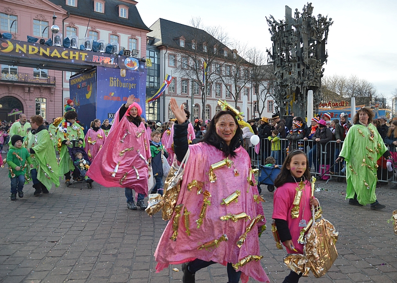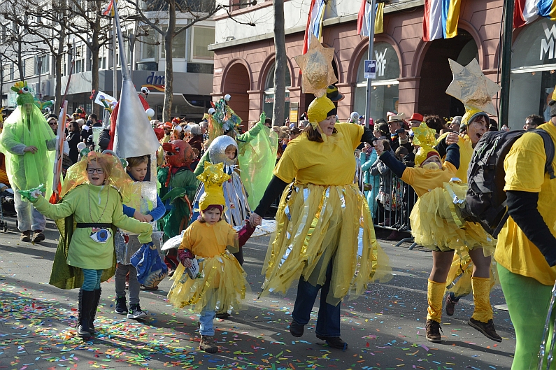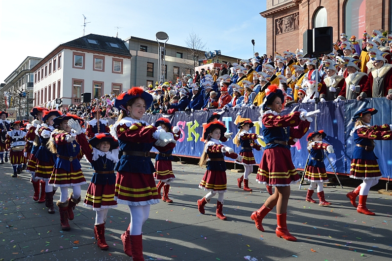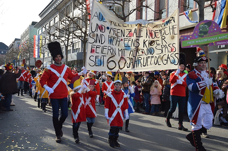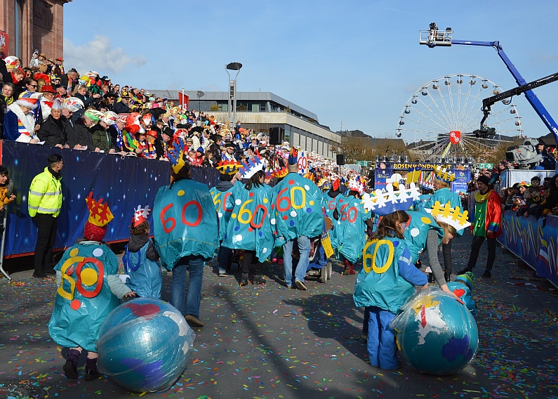 Petrus ist ein Meeenzer und definitiv ein Fan des Jugendmaskenzugs: Schon zum zweiten Mal hintereinander lachte der Himmel über dem Mainzer Jugendmaskenzug und bescherte dem größten Kinder- und Jugendumzug Europas zum 60. Geburtstag echtes Geburtstagswetter. Bei sanften acht Grad lachte die Sommer von einem milchblauen Himmel, dementsprechend voll war es am Samstag in der Mainzer Innenstadt: 59.999 Zuschauer hatten nach Angaben der Mainzer Polizei Spaß auf der Gass‘ und feierten die rund 4.500 kleinen Narren im Jugendmaskenzug. Dort gab es zum Geburtstag jede Menge Törtchen, Kerzen und Geschenke – in Form von wunderschönen Kostümen. „Die Stimmung war toll“, bilanzierte die Polizei – wir können dem nur zustimmen 😉 Und weil uns einfach nur zum Feiern war: Hier ganz kurz und schön unsere Bildergalerie. Jugendmaskenzug, Helau!! Alle Fotos: gik.