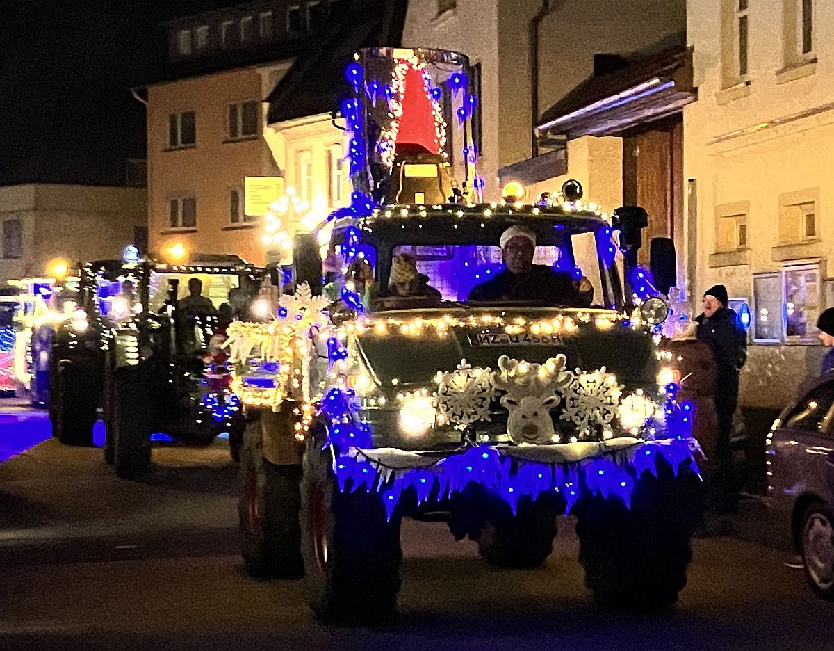 Reich geschmückter Unimog bei der Lichterfahrt 2022. – Foto: gik