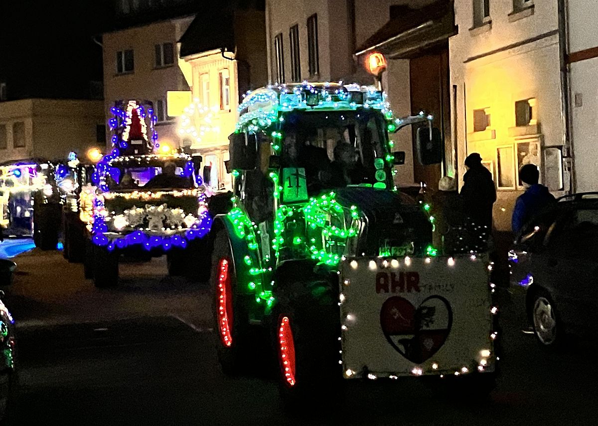 Die Lichterfahrt der rheinhessischen Landwirte hat eine lange Tradition, sie sollen den Kindern die Wartezeit aufs Christkind verkürzen und freudige Vorweihnachtsstimmung in die Orte bringen. In diesem Jahr war die Vorwarnzeit eher kurz, für viele Kam die Lichterfahrt überraschend – und die Frage nach Uhrzeiten und Route waren heiß begehrt. Für alle, die die Lichterfahrt verpasst haben, haben wir Fotos gemacht und auch Videos gedreht – eines könnt Ihr in diesem Artikel ansehen, ein zweites findet Ihr hier auf unserem Mainz&-Facebookprofil.