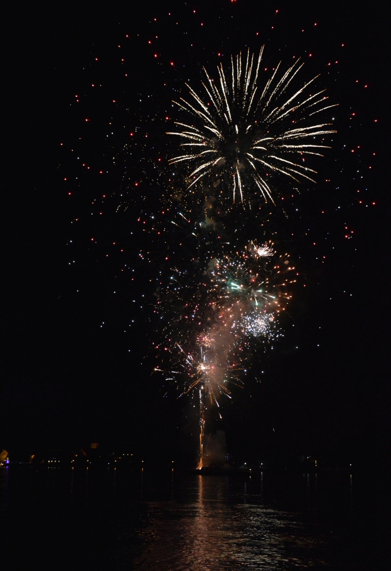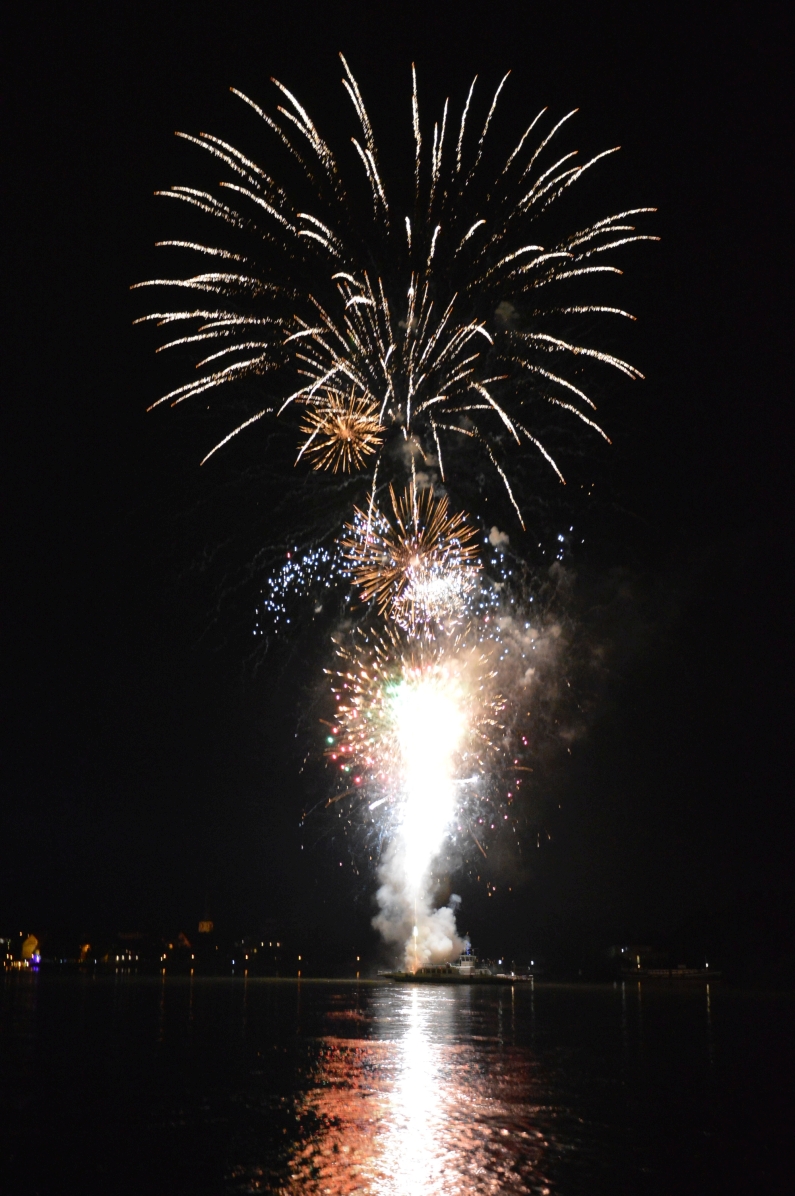 Es war ein wunderbares Kaleidoskop an Farben, Formen, Blumen, Palmen – einfach großartig und wieder einmal überraschend anders. Wir ziehen den Hut vor Euch, liebe Feuerwerker! Die bekamen nach ihrem Überraschungsfinale donnernden Applaus vom Ufer – das Abschlussbild ging so in die Breite, das wir es leider nicht geschafft haben, es einzufangen. Genießt trotzdem unsere Fotogalerie. Und wir sagen: Adé Johannisnacht, wir sehen uns 2017 – bei hoffentlich besserem Wetter!
