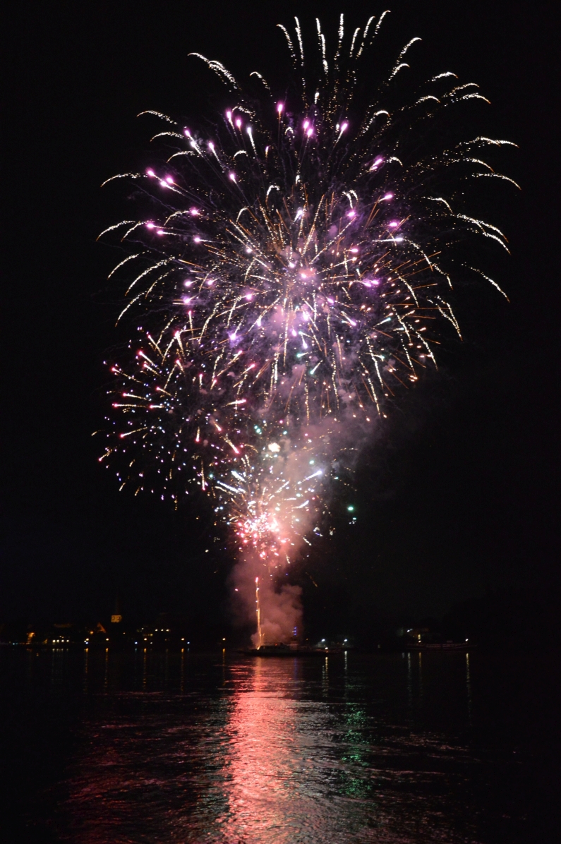 Das Rheinufer füllte sich spät, viele hingen doch noch vor den Fernsehern – dort schmiss gerade das kleine Island England aus der EM. Exit Britannia… Am Rheinufer genossen die Scharen derweil bei aufreißendem Himmel ein wunderbares Schauspiel, das wie immer von einer Fähre auf dem Rhein abgeschossen wurde.